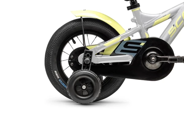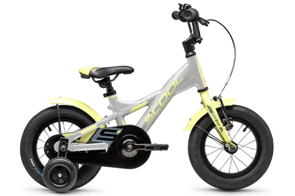Een sportieve kinderfiets van het met S'COOL. Geschikt voor kinderen vanaf 3 jaar, of met een lichaamslengte vanaf 92 cm. Opvallend is het gekleurde aluminium frame (framehoogte 21 cm) in de kleuren zilver en lime. Remmen kan met de terugtraprem of met de V-brake handrem op het voorwiel. Er zitten comfortabele 12 inch luchtbanden op de fiets en het zadel is in hoogte verstelbaar (43,5-51,5 cm). Zijwielen zijn optioneel en worden niet standaard meegeleverd.